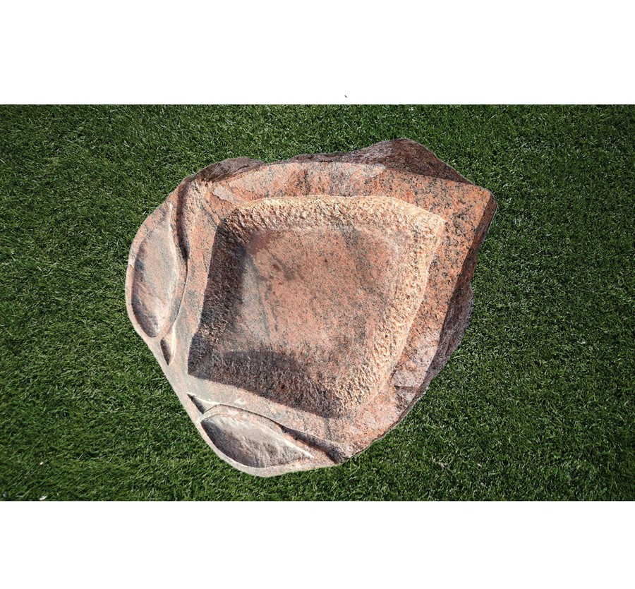 2: Fuglebad "Blad motiv" håndhugget